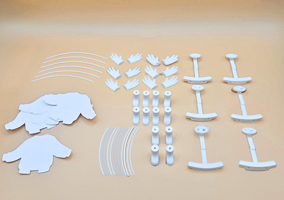 Each kit contains 6 buddies for you to build and 12 jumpers for you to decorate and dress them!