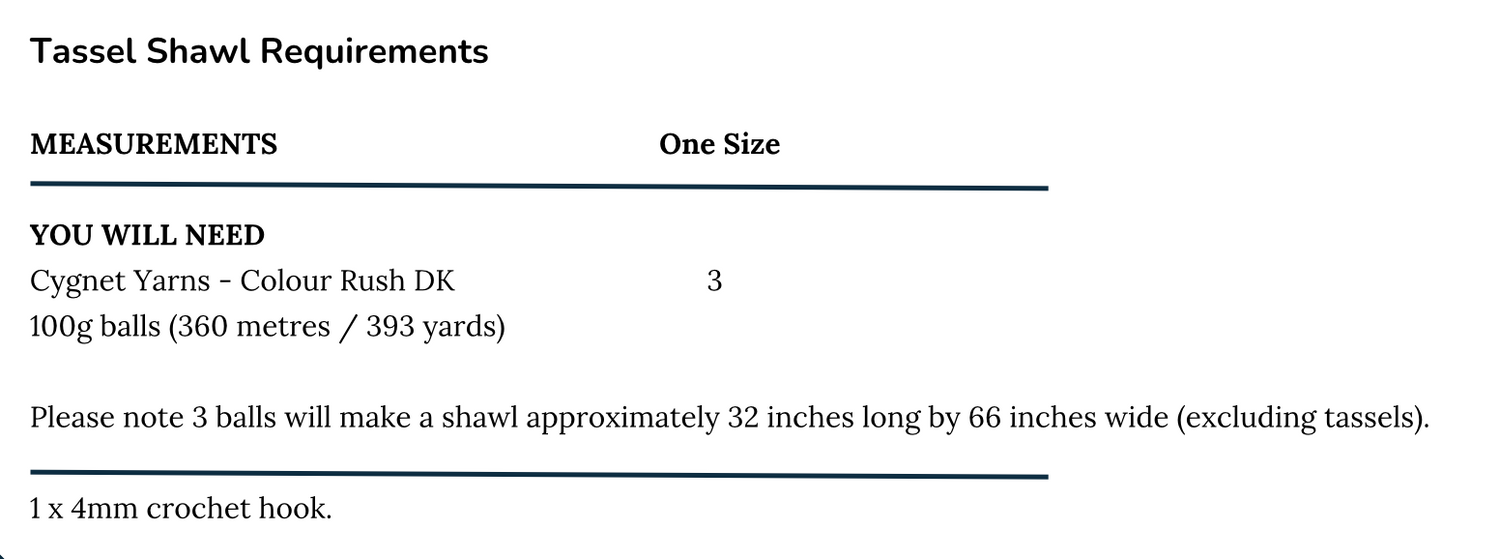 Fabulous 16 page pattern booklet guiding you step by step through the process of creating a stunning crochet wrap / shawl with tassels.